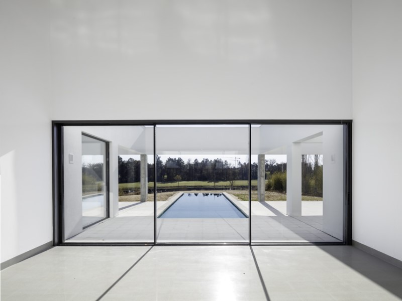 La grandeza del minimalismo se refleja en esta corredera de grandes dimensiones con hojas de hasta 4 metros, nudo central de tan solo 25 mm y marcos embutidos perimetralmente, permitiendo una superficie acristalada de hasta el 94 %. -